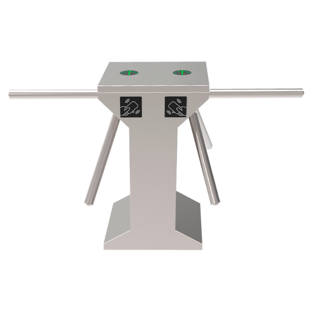 El torniquete TR1D es una solución doble en acero inoxidable SUS304, compacta y robusta, con dos módulos de tres brazos giratorios para un control eficiente de dos flujos de paso. El funcionamiento bidireccional y el ancho de paso de 550 mm garantizan una utilización cómoda y organizada.